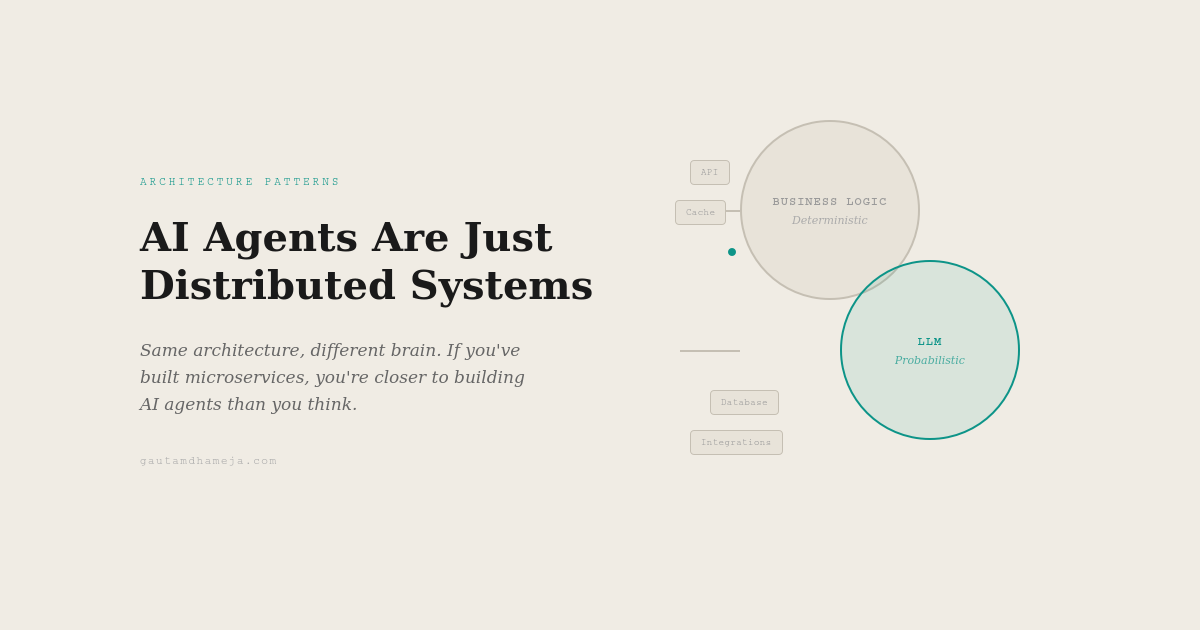 Traditional distributed systems and AI agents have a lot in common, primarily from the architecture perspective. In this post, I am examining the architecture patterns between the two and drawing out the similarities and differences. This is rather high level, but it aims to give a clear perspective on how to think about AI agents if you already know how to build distributed systems.