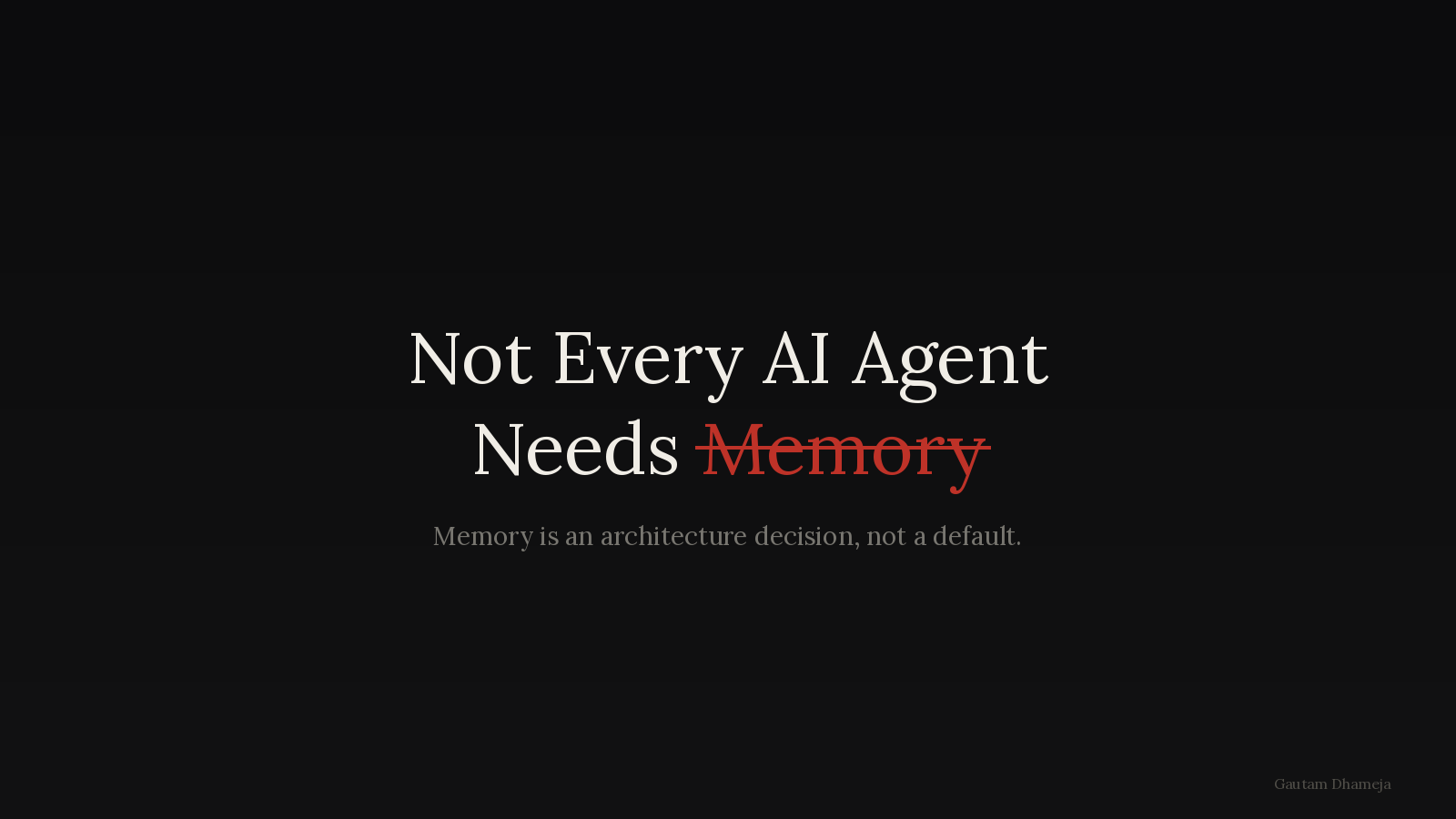 I was building an AI agent for a professional services use case for a customer, and the natural instinct was to add memory so that the agent could remember previous interactions, build context over time, and learn from the past queries and responses. Then I realized this agent handles multiple customers. If it remembers client A’s details and that context bleeds into client B’s details, then it’s not just a bug; it’s a compliance violation. It could also be a confidentiality violation. Then I got to thinking: do all AI agents need memory?