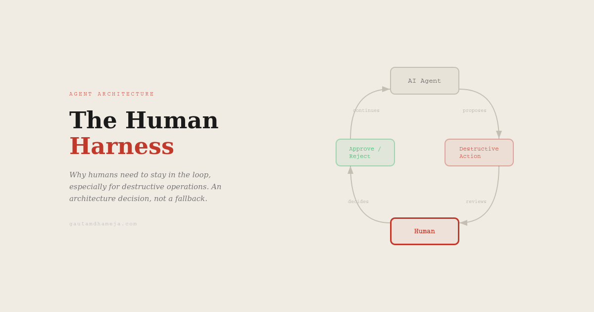 The human harness is about having a verification layer for actions that are destructive or irreversible. Here is how this could work: